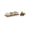 Kela - zestaw 3 porcelanowych okrągłych miseczek na bambusowej podkładce, 26x10x4,5 cm Philipa
