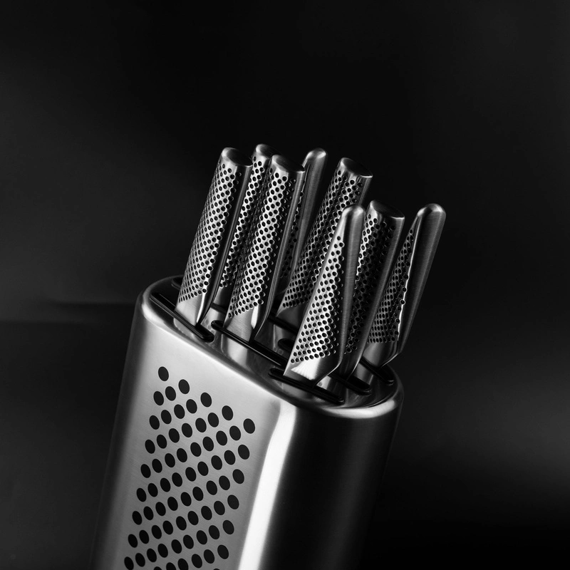 W skład zestawu 8 noży Global  w bloku wchodzą: