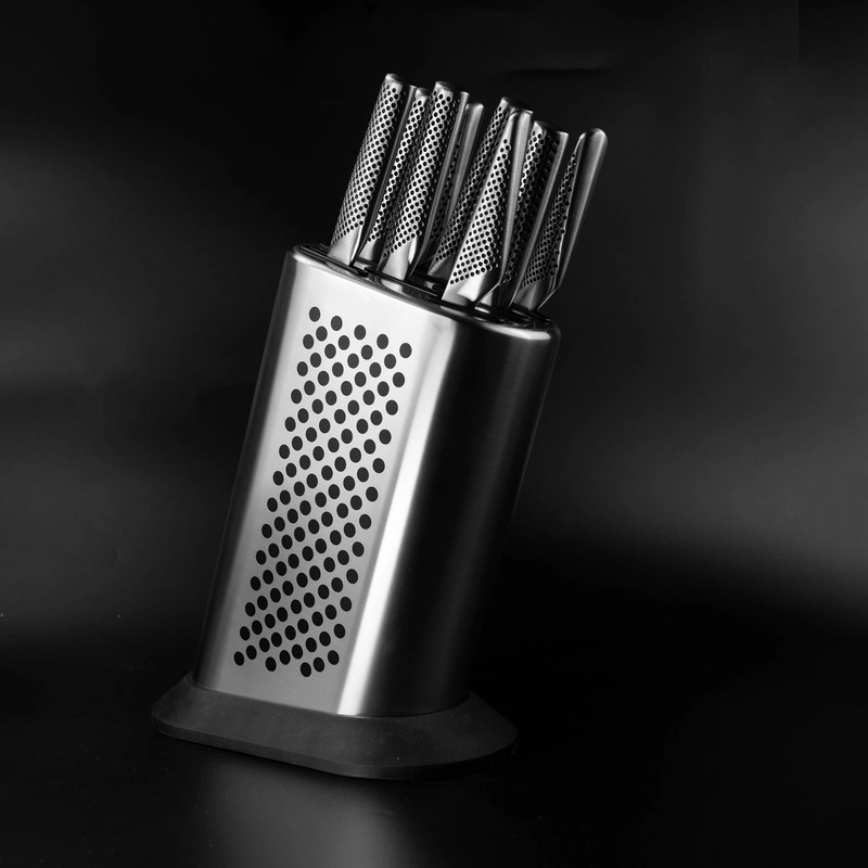 Wszystkie noże Global posiadają cienką krawędź ostrza, "kropkowany" uchwyt , dzieki któremu noże dobrze leżą w dłoni, nie ślizgają się.  Wyjątkowy design noży Global jest ich dodatkowym atutem, noże zdybyły wiele światowych nagród zarówno z uwagi na projekt  jak i na użyteczność.