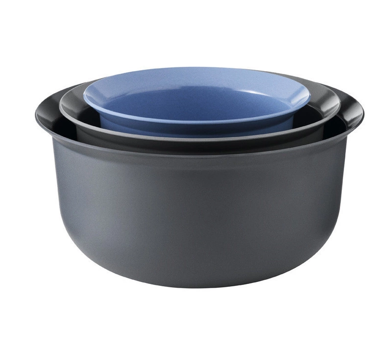 Miski kuchenne RIG-TIG wykonane są z melaminy o 30% zawartości włókien bambusowych. Miski można przechowywać jedną w drugiej, zajmują mało miejsca.