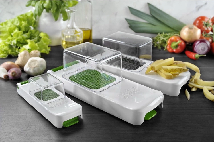 Jedną ręką przy pomocy ostrzy posiekasz warzywa na sałatkę lub ziemniaki na domowe frytki.