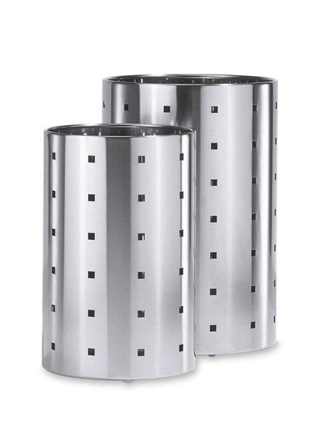 Kosz na śmieci z charakterystycznym wzorkiem w kwadraciki, wykonanano w całości ze stali nierdzewnej.Dostępny również w mniejszym rozmiarze