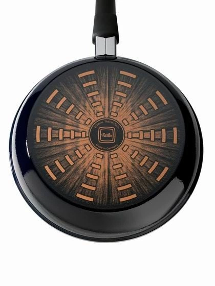Posiada dno ThermoTech bardzo dobrze rozprowadzające temperaturę przystosowane do użytku na wszystkich rodzajach kuchni poza indukcyjną.