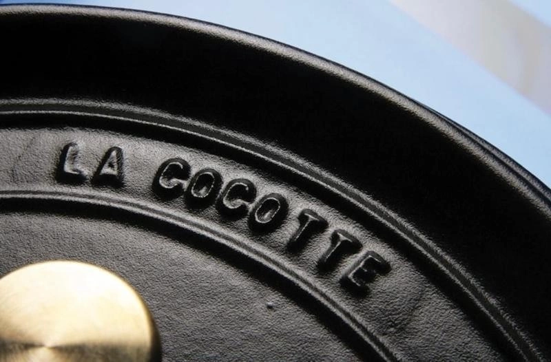 Warstwy żeliwnych garnków i brytfann Staub: