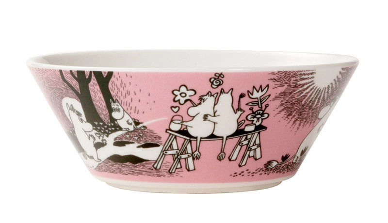 Miseczka Muminki Love fińskiej marki Arabia z serii porcelany poświęconej postaciom z książek Tove Jansson. Autorka znanych i lubianych książek o Muminkach zaakceptowała pierwsze grafiki podczas powstawania muminkowej porcelany.