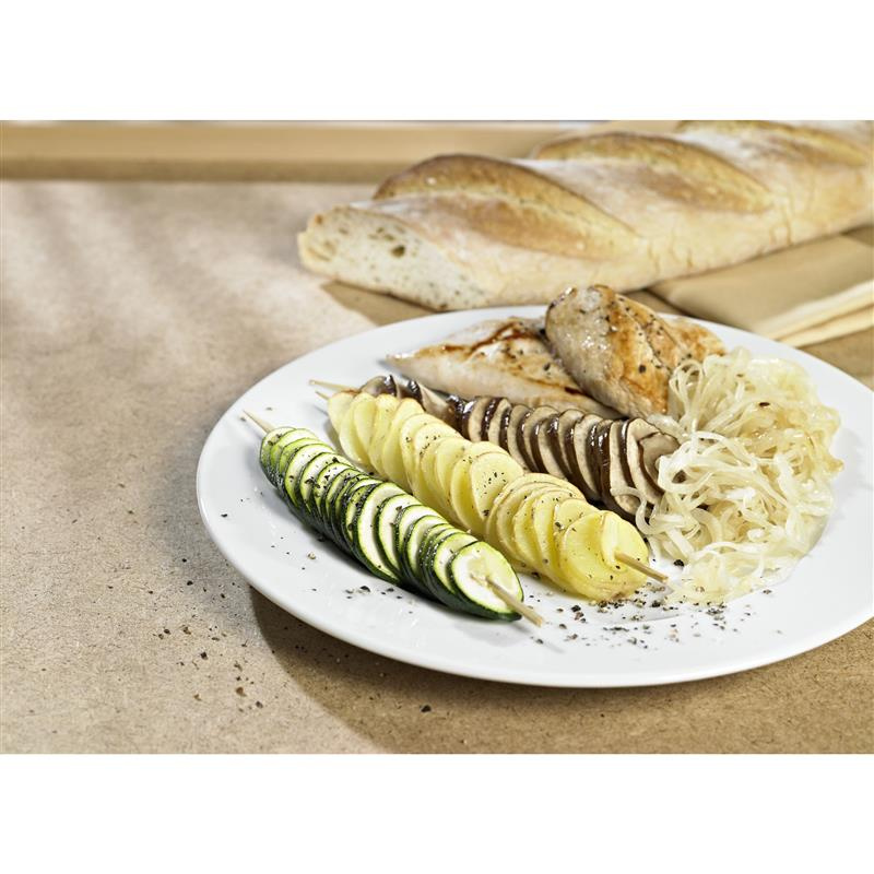 Ziemniaki skorojone w kształt sprali można smażyć w oleju lub piekarniku, otrzymamy pyszne domowe frytki w niebanalnym kształcie. Ostrze ma regulowaną grubość krojenia do 5mm.
