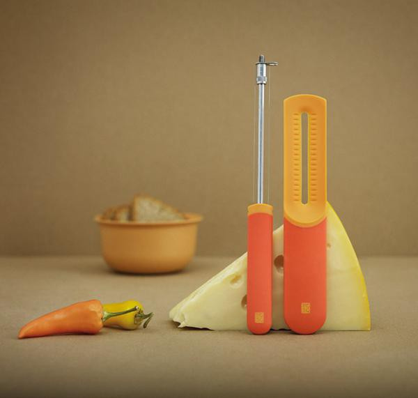 W skład zestawy wchodzi strunowa krajalnica oraz hebel do sera.