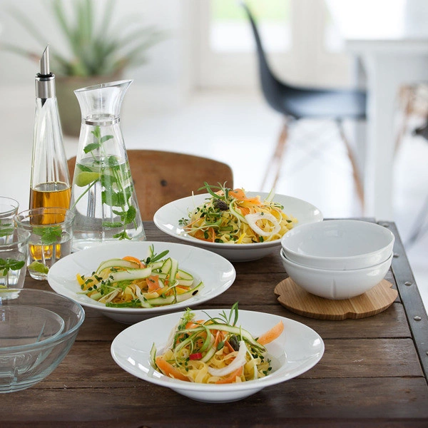 Prosty i funkcjonalny wzór sprawia, że jedzenie jest na pierwszym planie. Biel na stole to ponadczasowa elegancja.