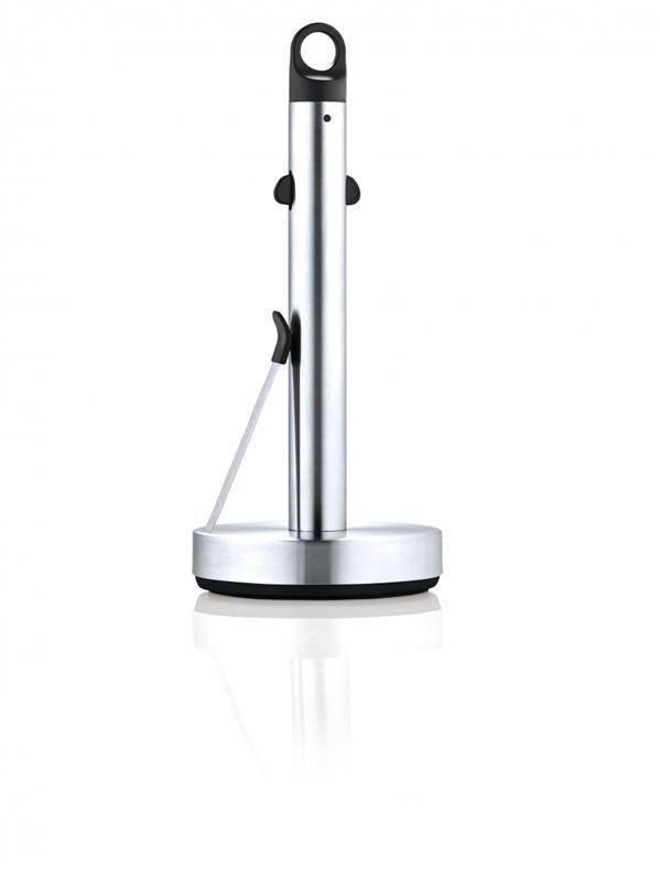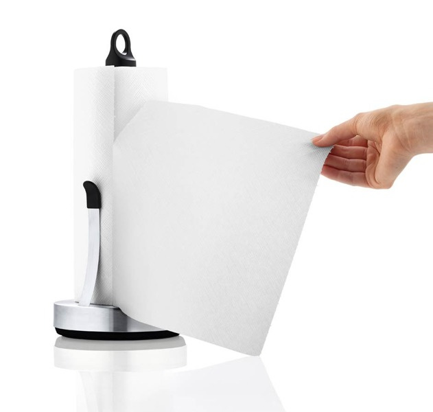Stojak na ręcznik papierowy Loop Blomus wykonany ze stali nierdzewnej. Sprytny i funkcjonalny pomysł na przechowywanie ręcznika papierowego w kuchni.