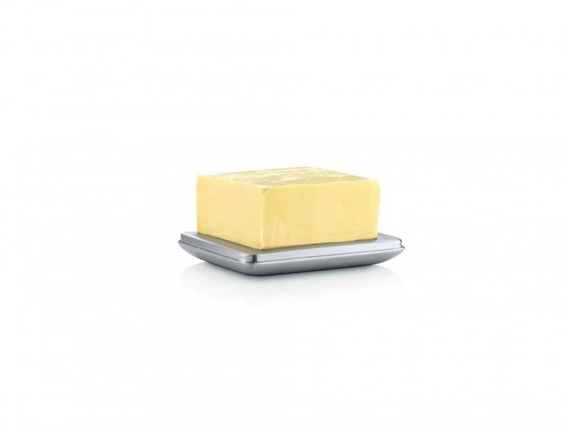 Stalowa maselniczka z serii Basic niemieckiej firmy Blomus. Wykonana ze stali nierdzewnej polerowanej i i matowej. Ta maselniczka zmieści kostkę masła o wadze do 250 gr. Dopasowana pokrywa pozwala utrzymać świeżość masła.