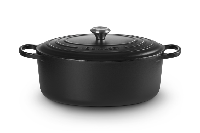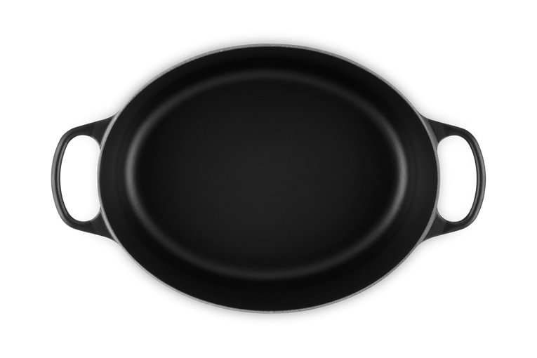 Owalna żeliwna brytfanna jest równie wszechstronna co tradycyjna, ma odpowiednią długość, by pomieścić cały udziec jagnięcy, gęś.