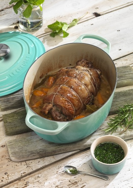 Emaliowana, żelwina brytfanna francuskiej firmy Le Creuset. Najwyższej jakości produkt firmy z kilkudziesięcio letnią tradycją. Le Creuset jest obecnie światowym liderem w produkcji naczyń żeliwnych.