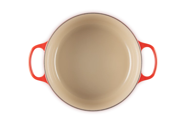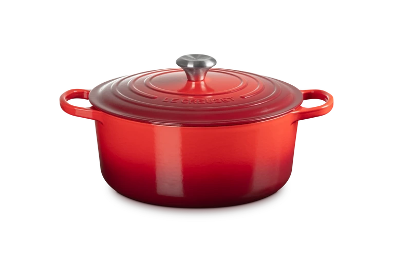 Garnek żeliwny Le Creuset Signature 28 cm to połączenie ponadczasowego designu, niezrównanej trwałości i wyjątkowej funkcjonalności. Wykonany z najwyższej jakości żeliwa emaliowanego, zapewnia równomierne rozprowadzanie i długotrwałe utrzymanie ciepła, co czyni go idealnym do przygotowywania różnorodnych potraw – od duszonych mięs, przez zupy, aż po pieczywo.