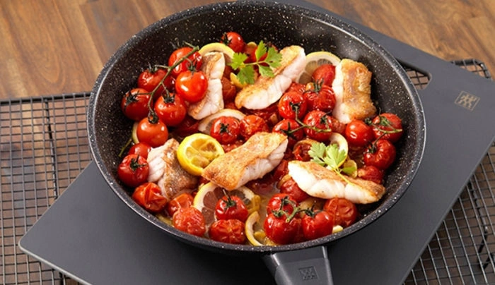Patelnie Zwilling Marquina Plus przeznaczone są do zdrowego niskotłuszczowego smażenia. Idealne do warzyw, drobiu, jajek, omletów, ryb oraz dań panierowanych.