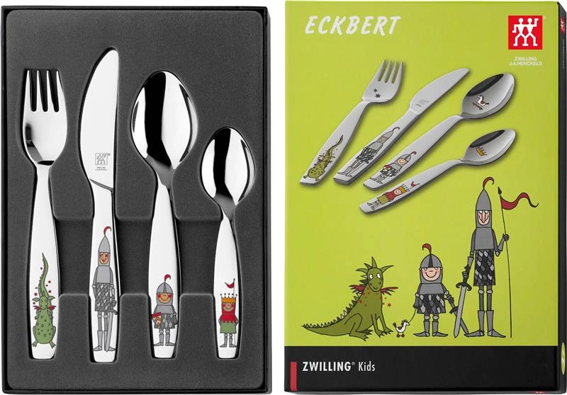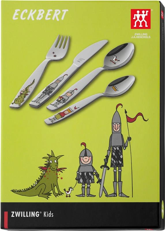 Zwilling - sztućce dla dzieci Eckbert 4 el Zestaw sztu ćców dla dzieci Eckbert niemieckiej marki Zwilling, wykonany ze stali nierdzewnej 18/10.