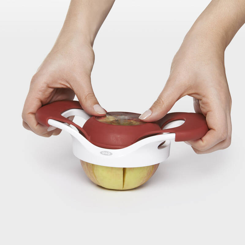Krajalnica do jabłek Good Grips OXO. Łatwo wydrążysz i pokroisz jabłko na równe części.