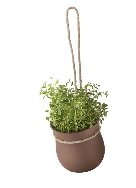 Wykonano ja z z silikonu. Największą jej zaletę jest to, że sama nawadnia rosnące w niej zioła. Dzięki systemowi drenażowemu i przestrzeni na zapasową wodę na dnie doniczki. Postawić można ją na parapecie lub za pomocą dołączonego do produktu sznurka, zawiesić zarówno w kuchni, jak i na tarasie, czy balkonie. Doniczka wykonana jest z elastycznego silikonu, ale jest na tyle stabilna, że spokojnie stanie się samodzielną ozdobą kuchennego blatu. Długość sznurka to 30 cm.