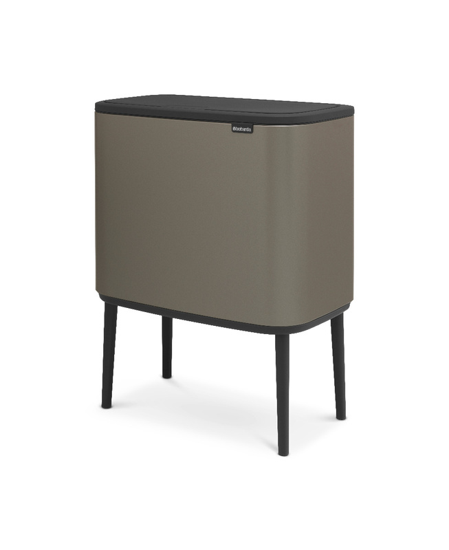 Kosz na śmieci Bo Touch Bin Brabantia platynowy dwukomorowy pojemnik o pojemności 34 l.