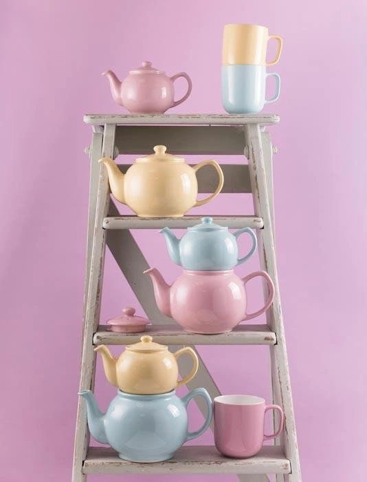 - imbryk do herbaty w wiosennym pastelowym kolorze różowym,