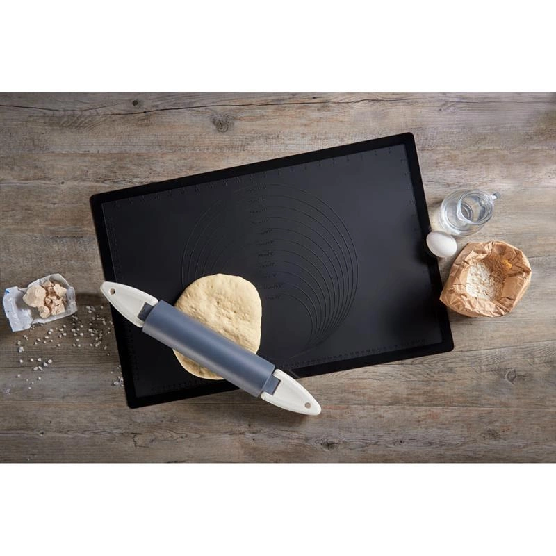 Niezwykle praktyczna stolnica silikonowa marki Lurch. Wałkowanie ciasta nie sprawia najmniejszych problemów, ciasto nie przywiera i nie trzeba go podsypywać. Stolnica może pelnić funkcję papieru do pieczenia, jest odporna na wysoką temperaturę. Matę można zwinąć, przez co nie zajmuje dużo miejsca.