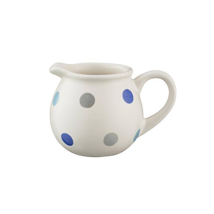 - wykonany z ceramiki i ozdobiony groszkami w kolorach niebieskim oraz szarym – ręcznie malowane,