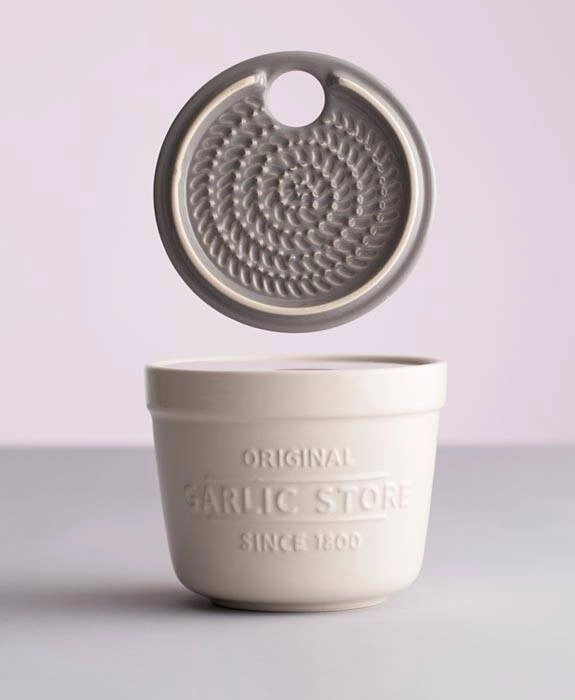 - pokrywa ma otwór wentylacyjny, dzięki któremu czosnek pozostaje dłużej świeży,
