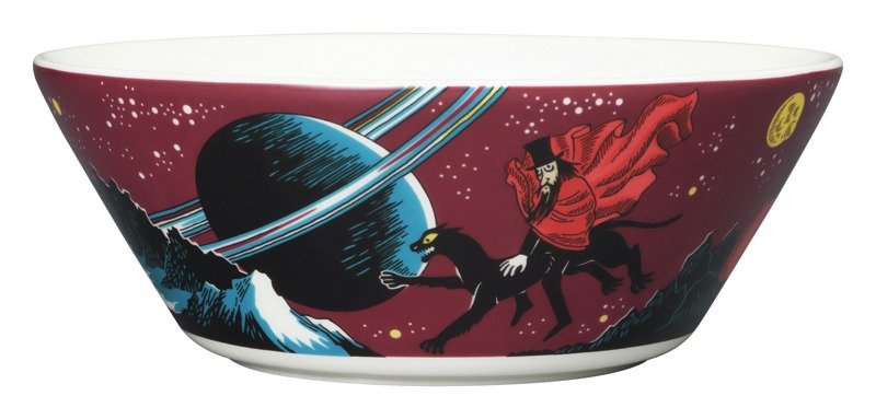 Miseczka Muminki Czarnoksiężnik fińskiej marki Arabia z serii porcelany poświęconej postaciom z książek Tove Jansson. Autorka znanych i lubianych książek o Muminkach zaakceptowała pierwsze grafiki podczas powstawania muminkowej porcelany.
