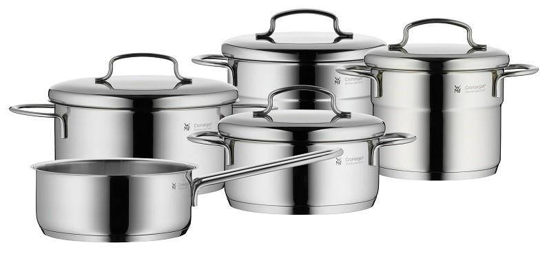 - zestaw 5 garnków z kolekcji Mini, w komplecie: 2 niskie garnki z pokrywkami (średnica 14 cm i 16 cm), 2 wysokie garnki z pokrywkami (średnica 14 cm i 16 cm), rondel o średnicy 14 cm bez pokrywki,