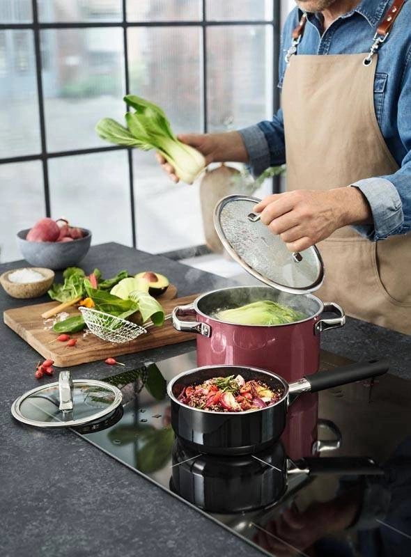 - wyjątkowe rezultaty gotowania – materiał doskonale przewodzi i rozprowadza ciepło, energooszczędny,