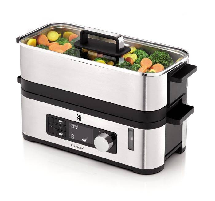 - wyposażony w programy gotowania: liściastych warzyw, warzyw korzeniowych, ryżu/makaronu oraz program z ustawieniami indywidualnymi,