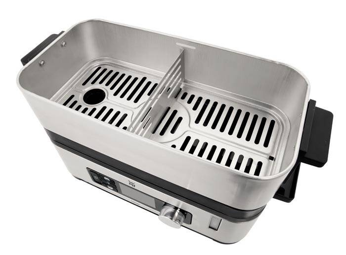 - wyposażony w 2 pojemniki, każdy o poj. 2,15 l (możliwość osobnego ustawienia programu dla każdej z komór) – jeden z nich posiada ruchomy separator do podzielenia składników,