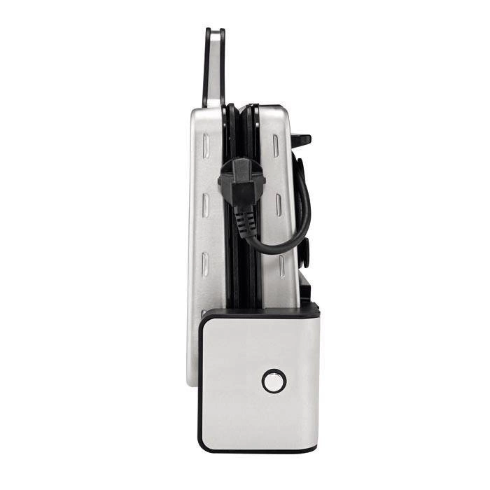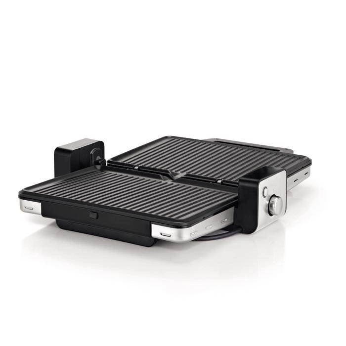 - 2 warianty ustawienia płyt: obie poziomo do grillowania filetów, szaszłyków, kiełbasek oraz z możliwością złożenia i opiekania np. steków albo tostów,