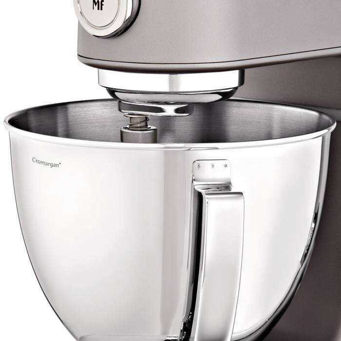 - w zestawie: miska do mieszania o pojemności 5 l (stal nierdzewna Cromargan®), pokrywa do miksowania z otworem do dodawania składników, płaska końcówka do mieszania, ubijaczka oraz hak,