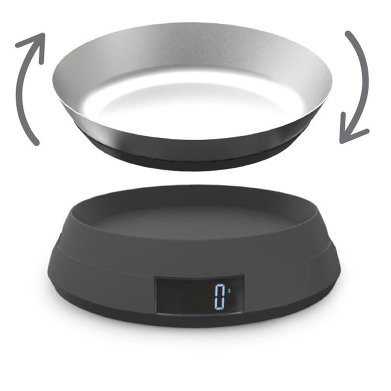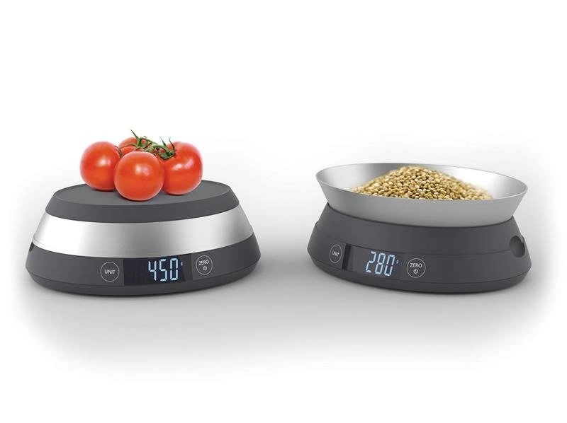 Waga składa się z dwóch części. Podstawa z wyświetlaczem LCD oraz miska, która stanowi pokrywę dla wagi jak również powierzchnie na której można ważyć produkty w torebkach czy innych opakowaniach. Po odwróceniu do miski można nasypać produkty sypkie.