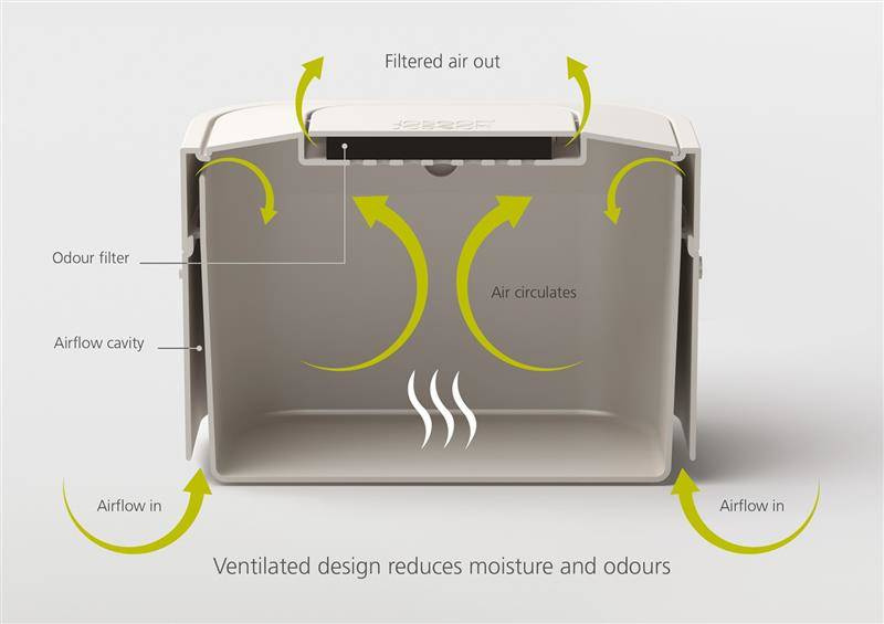 - wyposażony w filtr pochłaniający zapachy,
