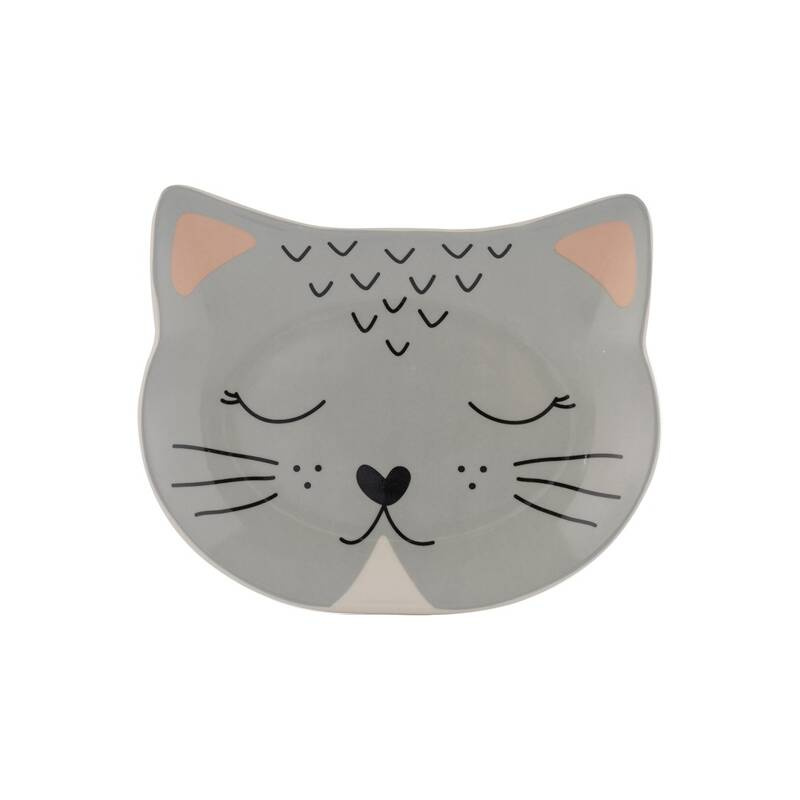 - płytka miseczka na karmę dla kota w kształcie głowy tego zwierzęcia, -wykonana z kamionki, - może być używana w kuchence mikrofalowej, - nadajesię do zmywarki. Wymiary: 16 x 13 x 2,5 cm (dł. x szer. x wys.) Materiał: kamionka Kolor: szary