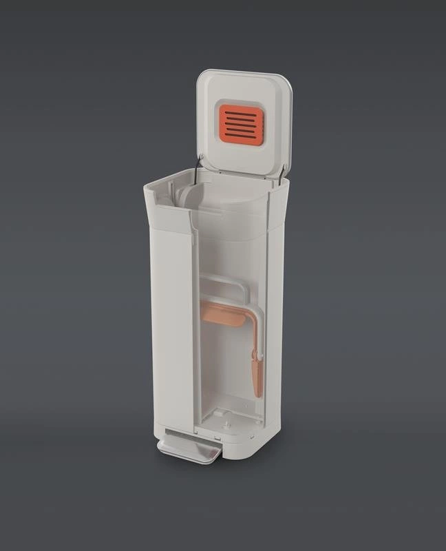 - kosz wyposażony w filtr węglowy neutralizujący zapachy, łatwy do wymiany, producent zaleca jego wymianę co 3 miesiące,