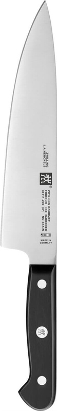 Noże Zwilling Gourmet to lekkie noże wykonane w technologii walcowania stali. Posiadają dużą wygodną nitowaną rękojeść wyprofilowaną do dłoni. Rękojeść w małym stopniu nachodzi na ostrze dodatkowo chroniąc przed ewentualnym skaleczeniem.