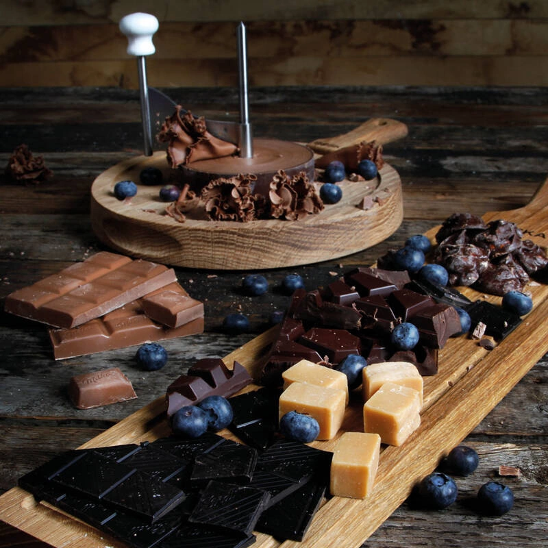 Ser dzięki zwijaniu go w cienkie pofalowane różyczki mocniej napowietrza się nabierając charakterystycznego, wyjątkowego smaku. Do Strug Friends do Girolle z sera i czekolady można dokupić klosz co ułatwi przechowywanie.