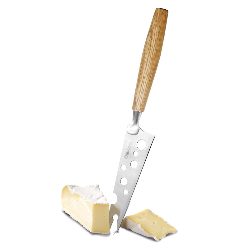 Rozwidlenie na czubku noża w kształcie „widelczyka” ułatwia rozdzielanie i serwowanie kawałków sera. Linię Life Collection charakteryzuje wykończenie naturalnym drewnem dębu amerykańskiego, w przypadku noża jest to wygodna, zgrabna rękojeść.