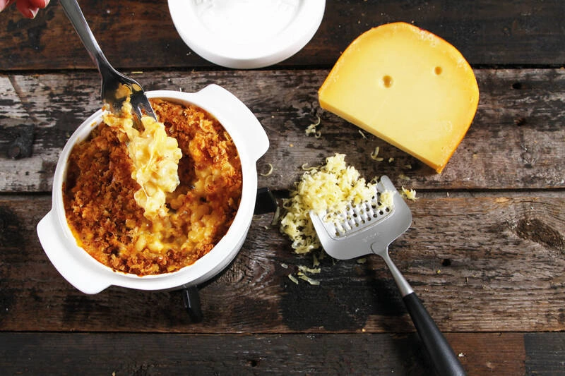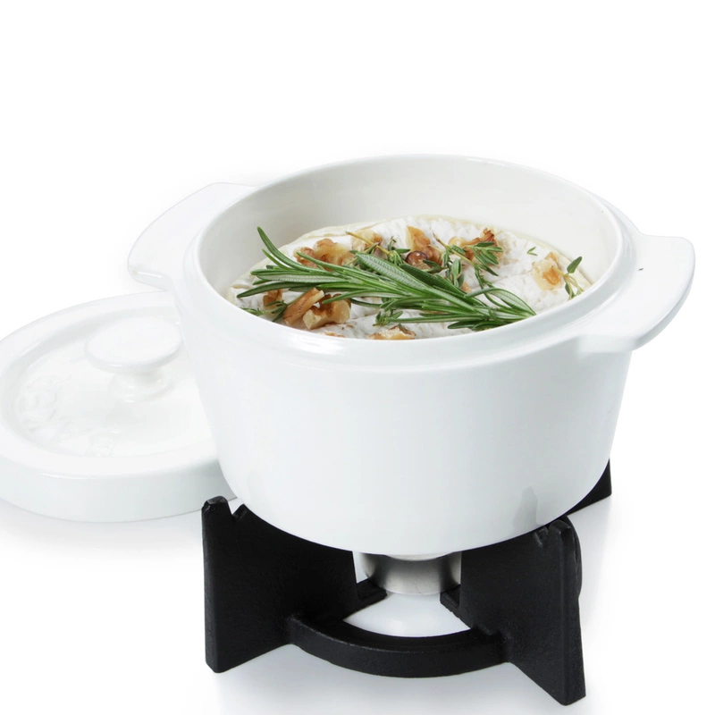 Designerski zestaw do zapiekania sera z żeliwną podstawą. Chcesz przyrządzić pieczony Camembert? Z Cheese Baker, to bułka z masłem! To zgrabne naczynie z pokrywką ma taki rozmiar, że Camembert będzie idealnie pasował.