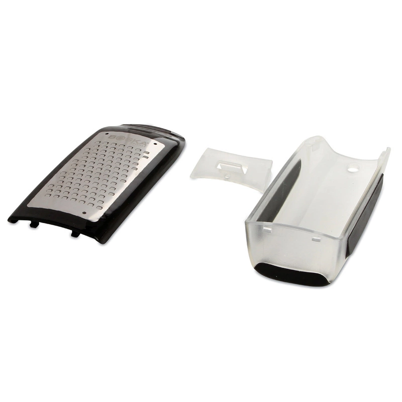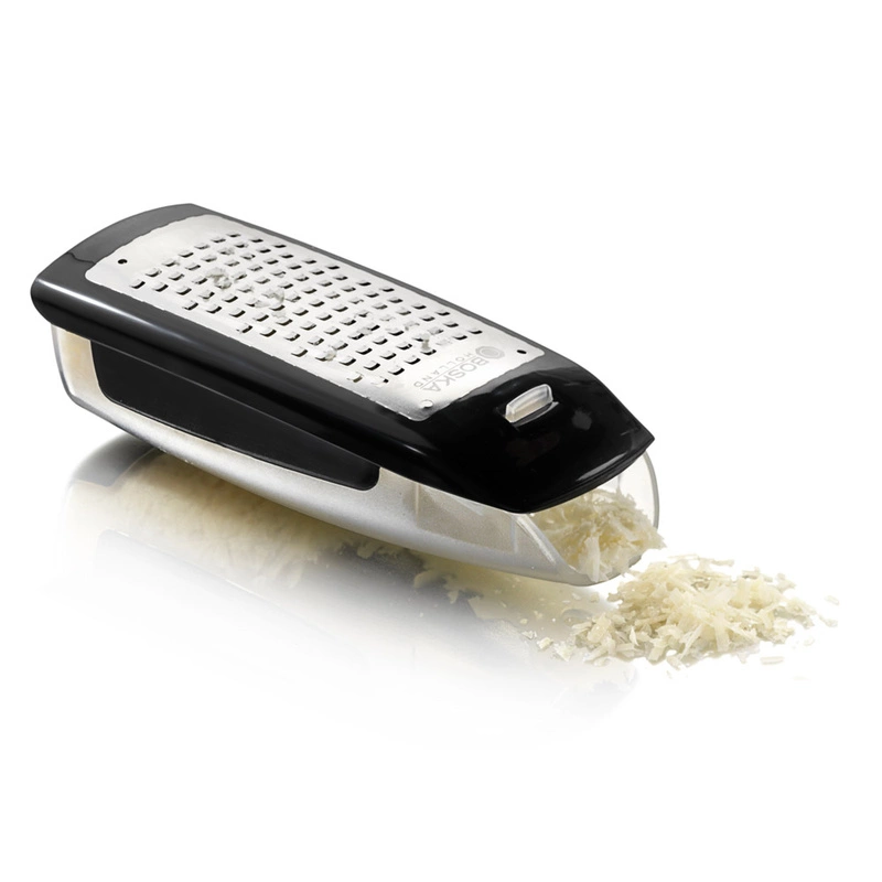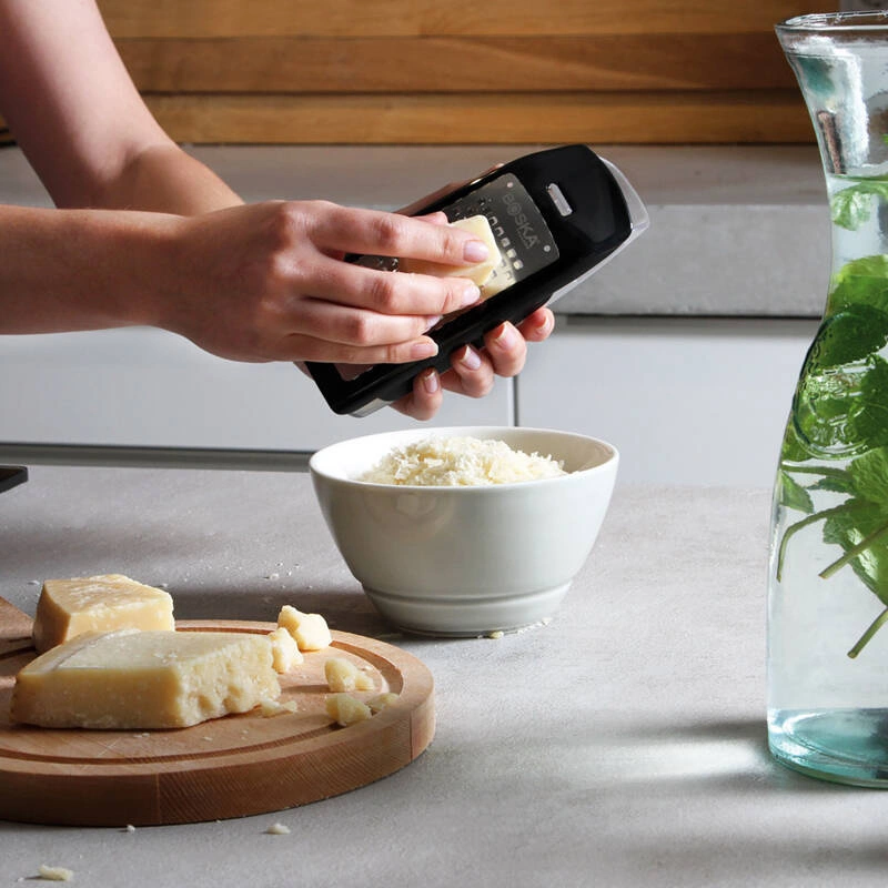 Składa się z tarki ze stali nierdzewnej oraz wyjmowanego, plastikowego pojemnika do przechowywania rozdrobnionego sera.