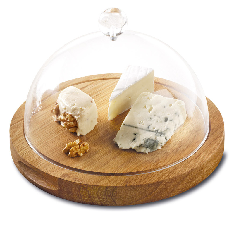 Zabezpiecza to klosz przed przypadkowym sunięciem się z deski a przykrycie sera zapobiega wysychaniu i pomaga w przechowywaniu.
