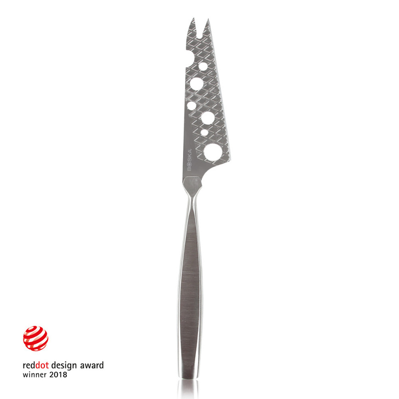 Rozwidlenie na czubku noża w kształcie „widelczyka” ułatwia rozdzielanie i serwowanie kawałków sera. Nóż Monaco do sera zdobył nagrodę Red Dot Design Award 2018! Nagroda Red Dot Product Design Award to potwierdzenie wysokiej jakości produktu oraz doskonałego wzornictwa, jedna z najważniejszych w swojej dziedzinie. Nóż został wykonany w całości ze stali nierdzewnej. Można myć w zmywarce.