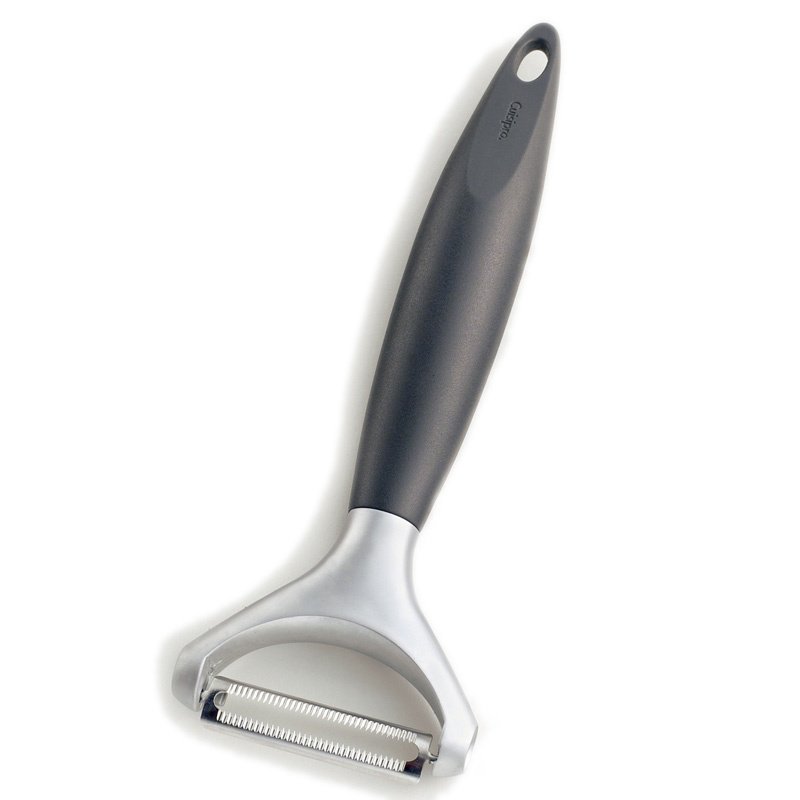 Dzięki ząbkowanym ostrzom bez trudu obierzesz cienkie skórki. • Idealna do obierania warzyw oraz owoców z cienką skórką takich jak brzoskwinie, śliwki, pomidory, cukinie, marchew czy ogórki. • Ergonomiczny uchwyt zapewniający szybkość i wygodę obierania. • Jest to przyrząd 2 w 1 składający się również z narzędzia do usuwania zepsutych części warzyw. • Główka skonstruowana ze stopu cynku zapewnia długotrwałą wytrzymałość. • Ostrze jest wykonane ze stali węglowej. • Można myć w zmywarce.
