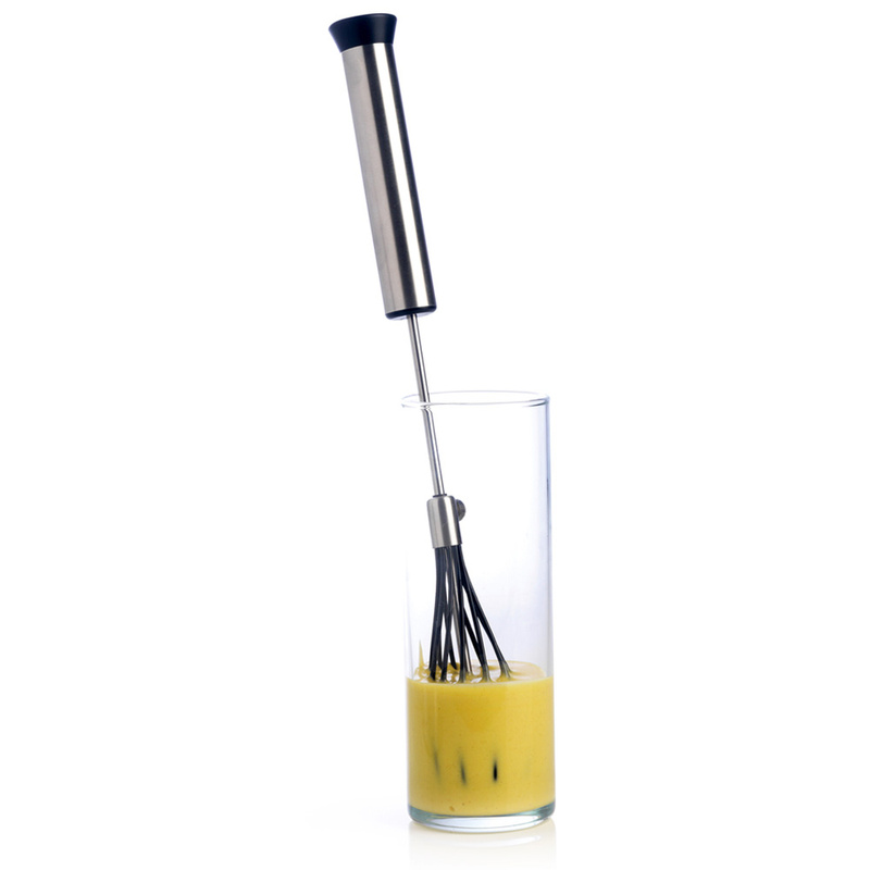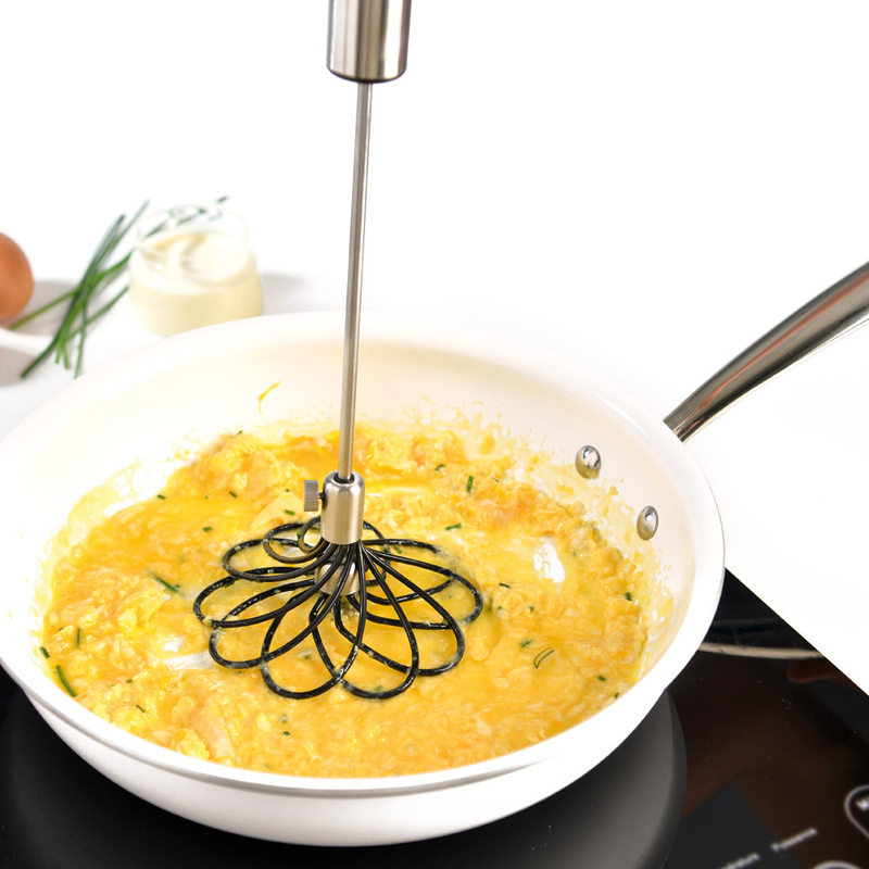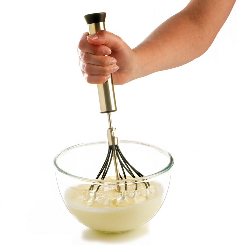 Ale to nie wszystko! Naciskając rączkę w dół, trzepaczka zaczyna wirować.