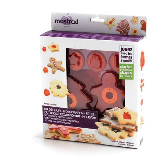 Przygotuj według swojego pomysłu wyjątkowe świąteczne pierniczki i inne ciasteczka używając zestawu Foremki-Stempelki do Ciasteczek firmy Mastrad! W skład zestawu wchodzi 1 stempel magnetyczny 4 ozdobne stempelki, 3 foremki do wykrawania ciasteczek, 3 foremki – kształtki.
