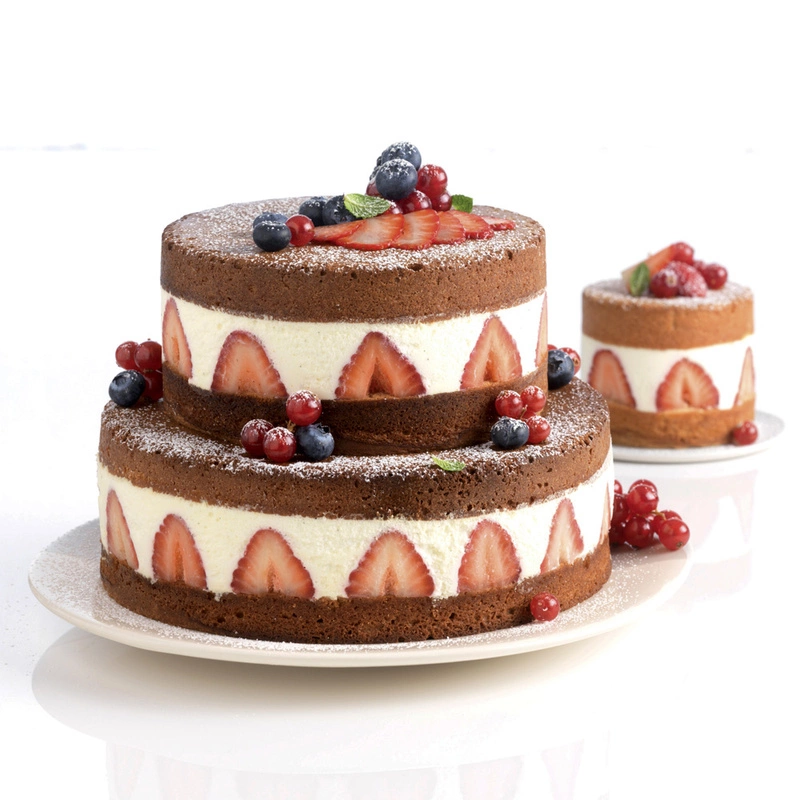 Zestaw 3 okrągłych form wykonanych z silikonu. W skład zestawu wchodzą formy o średnicy: 9 cm, 15 cm, 20 cm. Wykonane z silikonu formy sprawią, że ciasta pieką się perfekcyjnie, nie przywierają i jest je łatwo wyjąć po upieczeniu. Trzy formy o różnej średnicy pozwalają upiec małe ciasteczko dla jednej osoby, jak i kilkupiętrowy tort. Silikon jest wytrzymały na niskie i wysokie temperatury (od -40 do 220 stopni). Można myć w zmywarce.
