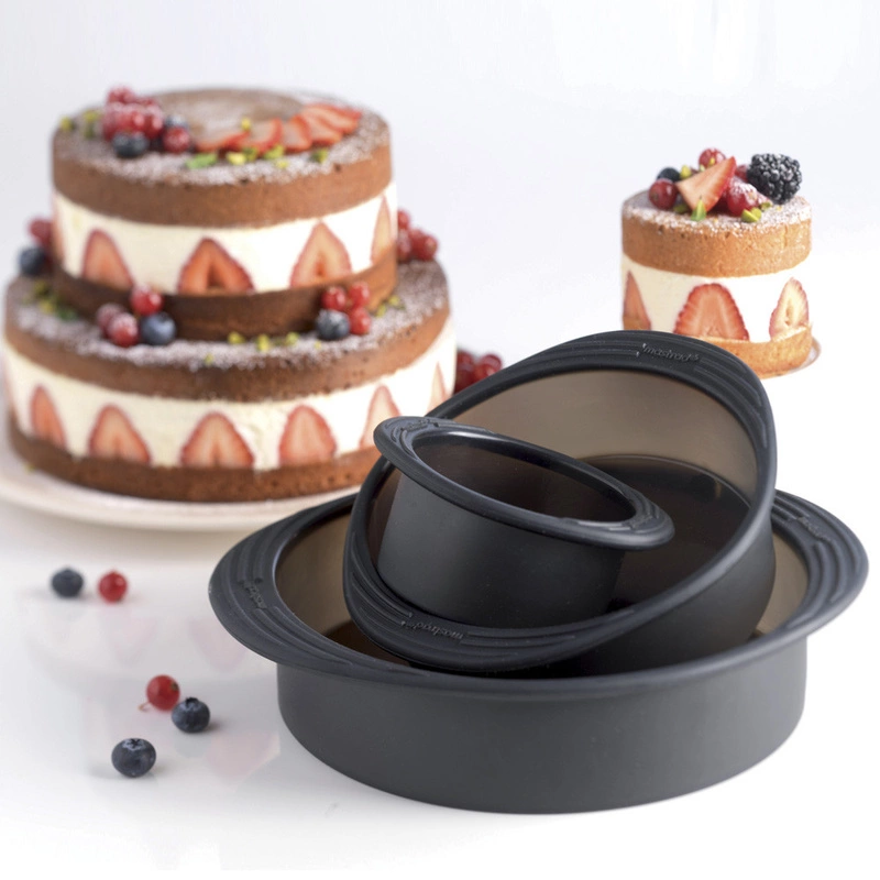 Mastrad - SILIKONOWE FORMY OKRĄGŁE DO CIASTA 3 CZĘŚCIgrafitowy