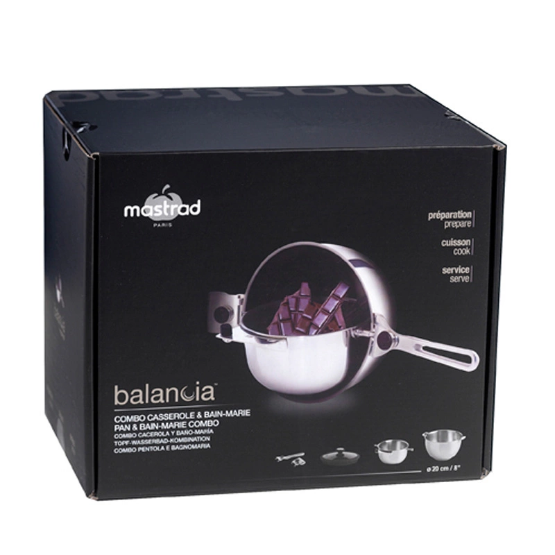 Mastrad - MISA BALANCIA (GARNEK) Z WKŁADEM DO KĄPIELI WODNEJ (ŚREDNICA 20 CM) – ZESTAW (3 ELEMENTY)srebrny, uchwyt i brzeg pokrywki czarny